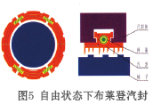 布莱登汽封取消了传统汽封弧块背部的板弹簧,取而代之的是在每圈汽封弧块端面处,加装了四只螺旋弹簧。自由状态下,在弹簧力的作用下汽封弧块是处于张开状态而远离转子(见图5);