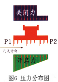 随着蒸汽流量的增加,作用在每圈汽封弧块背部的蒸汽压力逐步增大(见图6),当这一压力足以克服弹簧应力、摩擦阻力等时,汽封弧块开始逐渐关闭,直至处于工作状态,并始终保持与转子的最小间隙值运行(见图7);停机时,随蒸汽流量的减小,在弹簧应力的作用下,汽封弧块远离转子,使汽封与转子的径向间隙达到最大值。