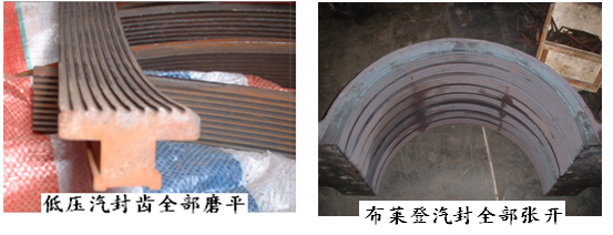 2003年5月31日该机由于润滑油管路断油,1~10#瓦全部烧毁(见大唐集团公司安生部2003年6月5 日事故快报)。事故导致低压缸全部传统汽封齿磨平,高中低压缸的叶顶汽封严重磨损,低压转子、电机转子有不同程度的弯曲和裂纹。由于高中压缸采用的是布莱登汽封,汽封能够在事故始发瞬间张开,从而避免了与转子碰磨,不仅高中压汽封没有任何磨损,无须更换任何一块汽封,而高中压转子更没有弯曲和损伤,避免了事故进一步扩大化。高中压缸布莱登汽封所具有的这种被动安全特性与低压缸传统汽封形成了鲜明的对比。